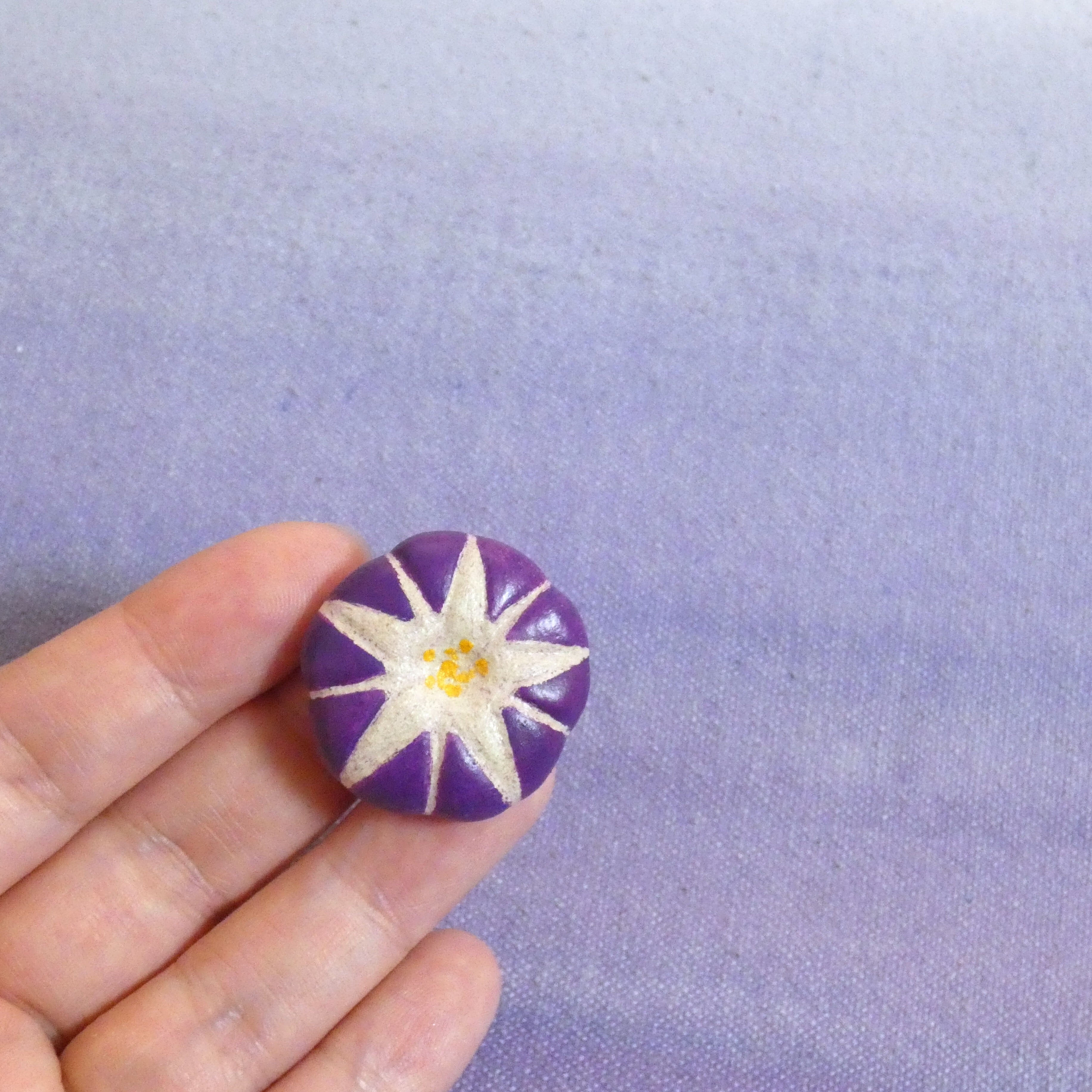 オーブン陶土で作った【アサガオの帯留めとブローチ】です。