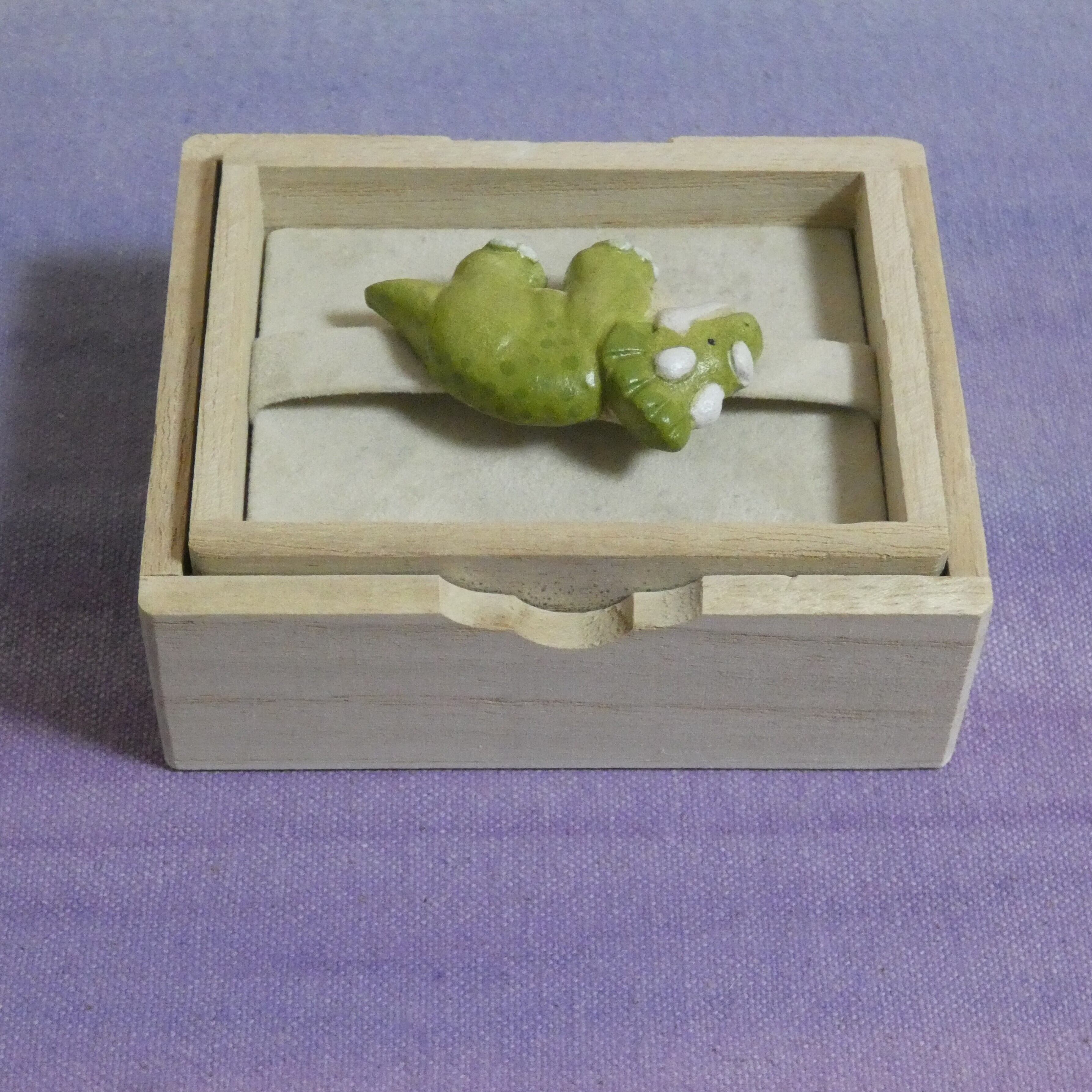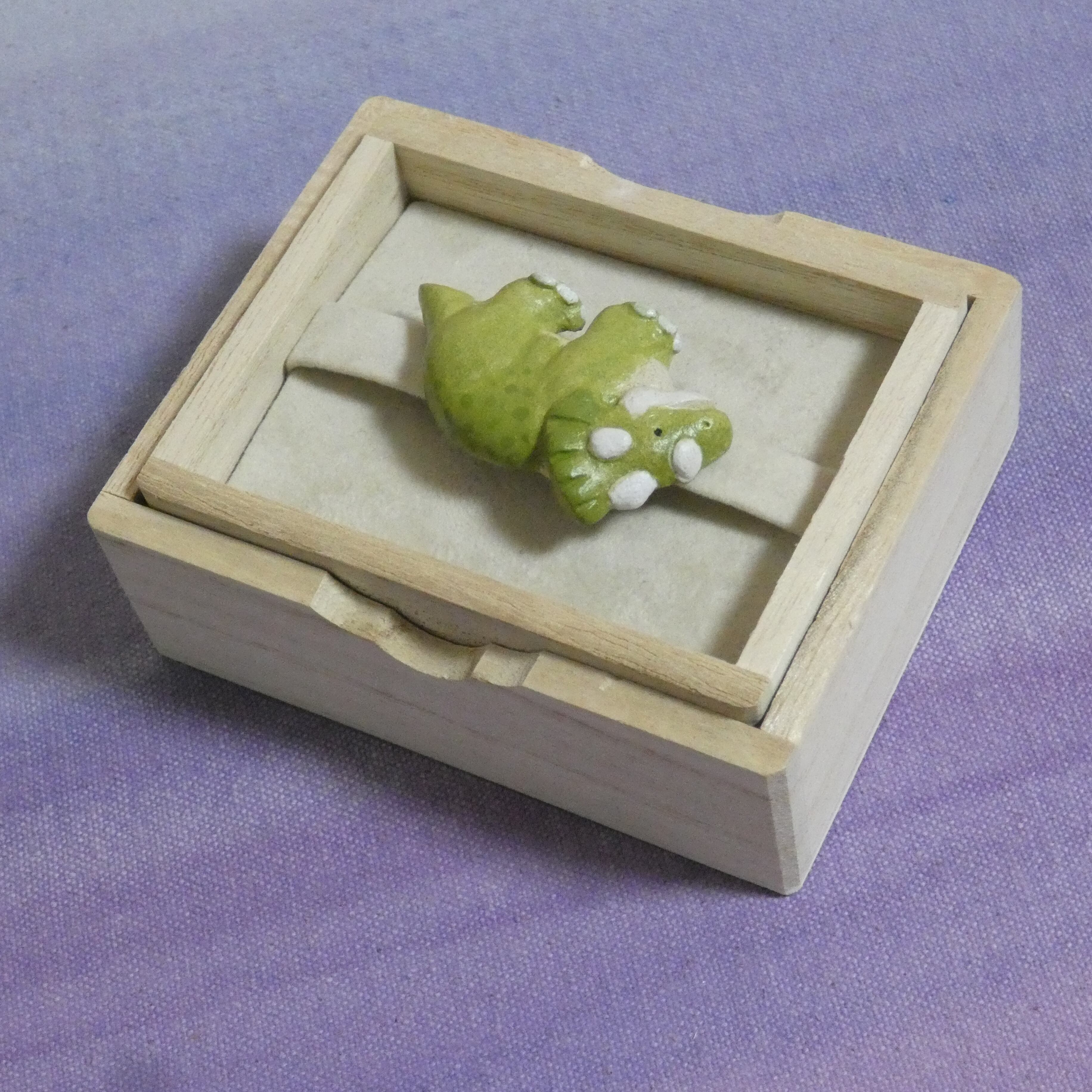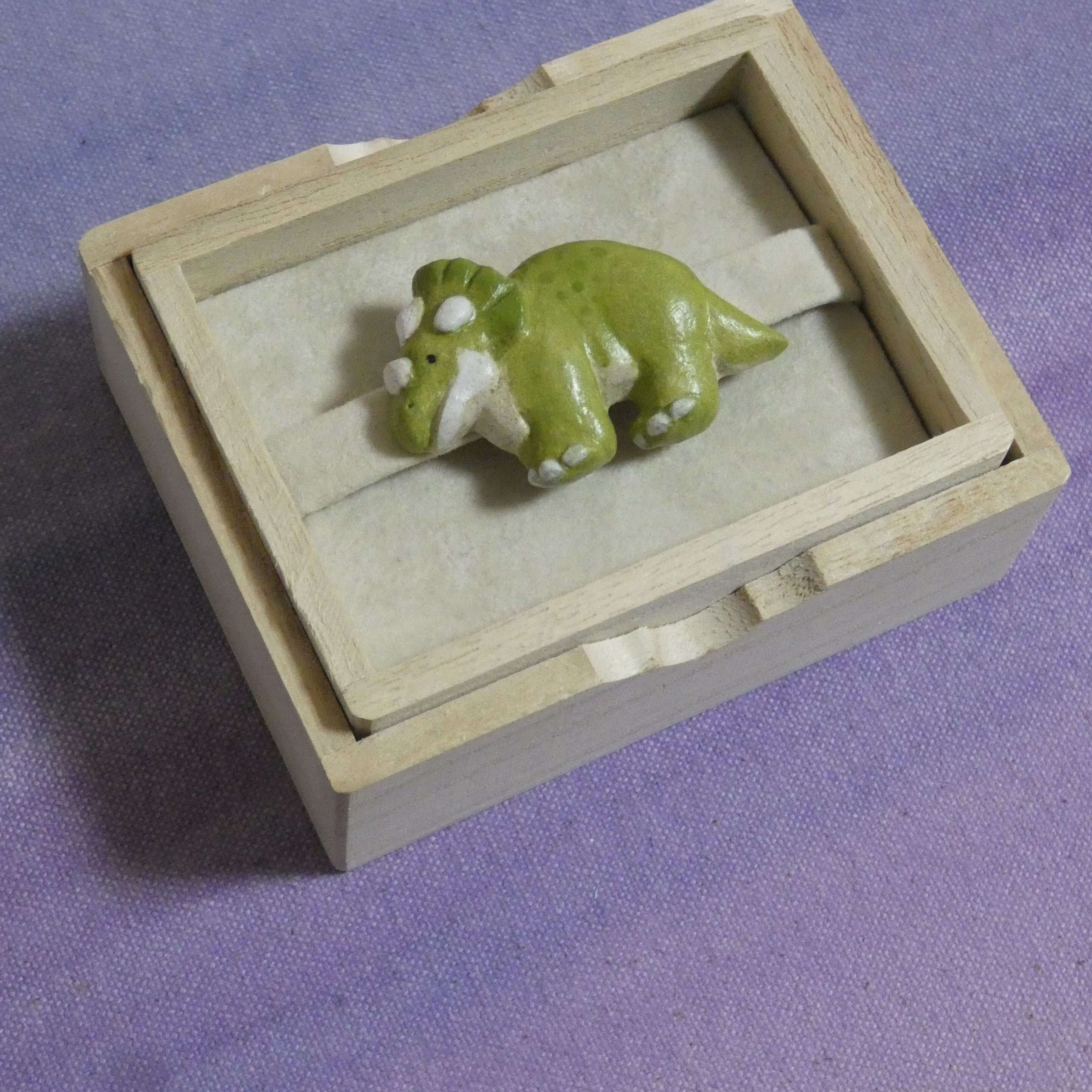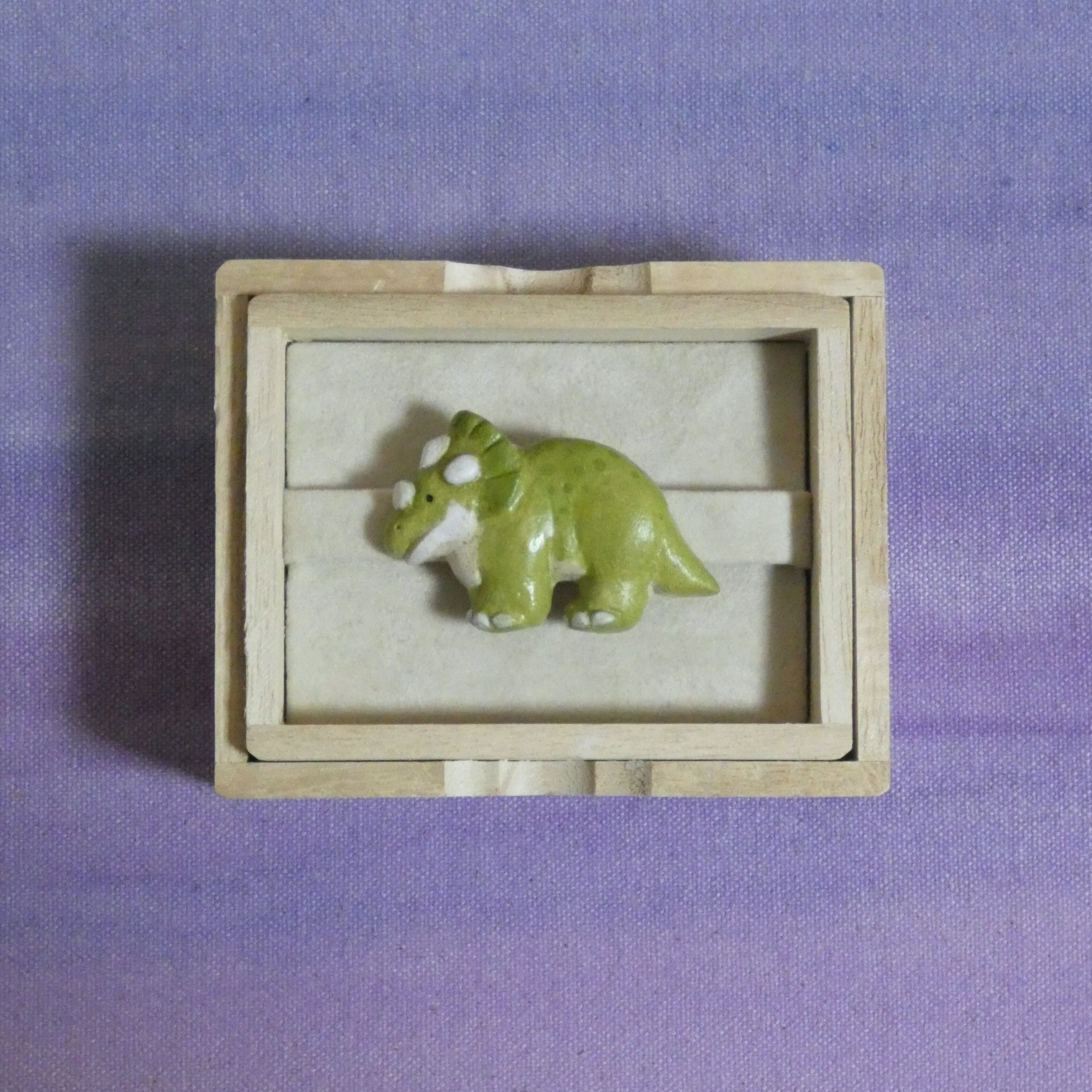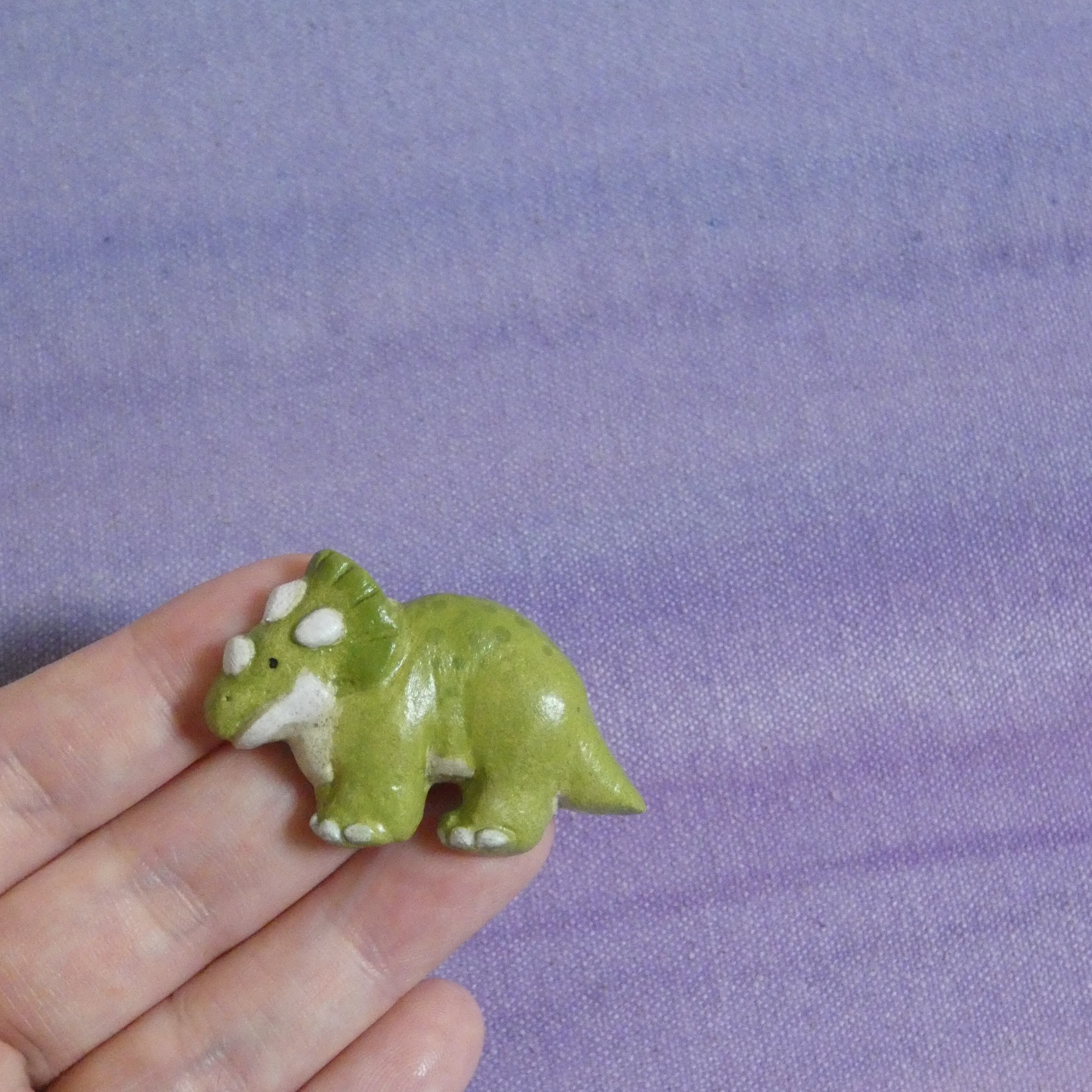 オーブン陶土で作った【恐竜(トリケラトプス)の帯留めとブローチ】です。