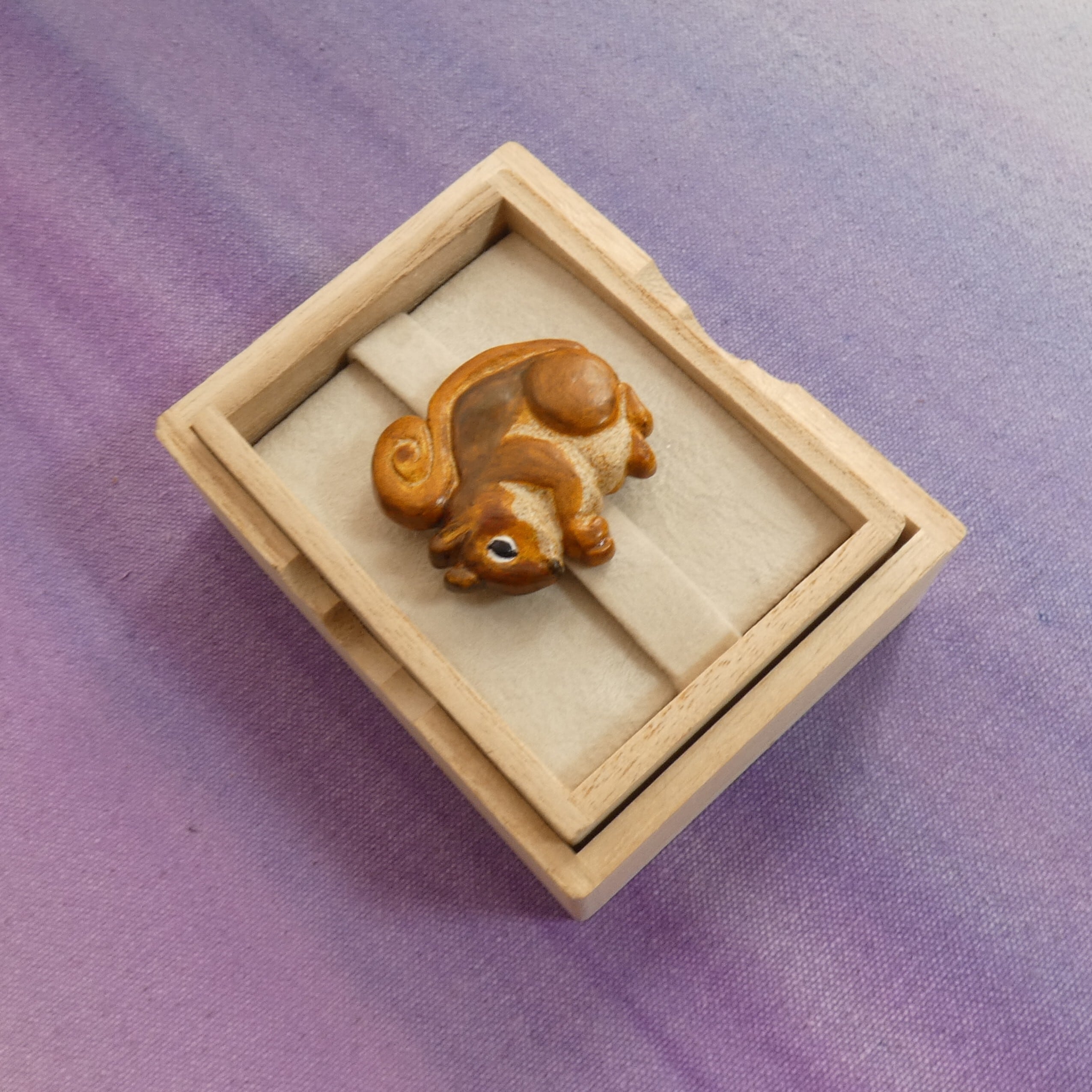 オーブン陶土で作った【リスの帯留めとブローチ】です。