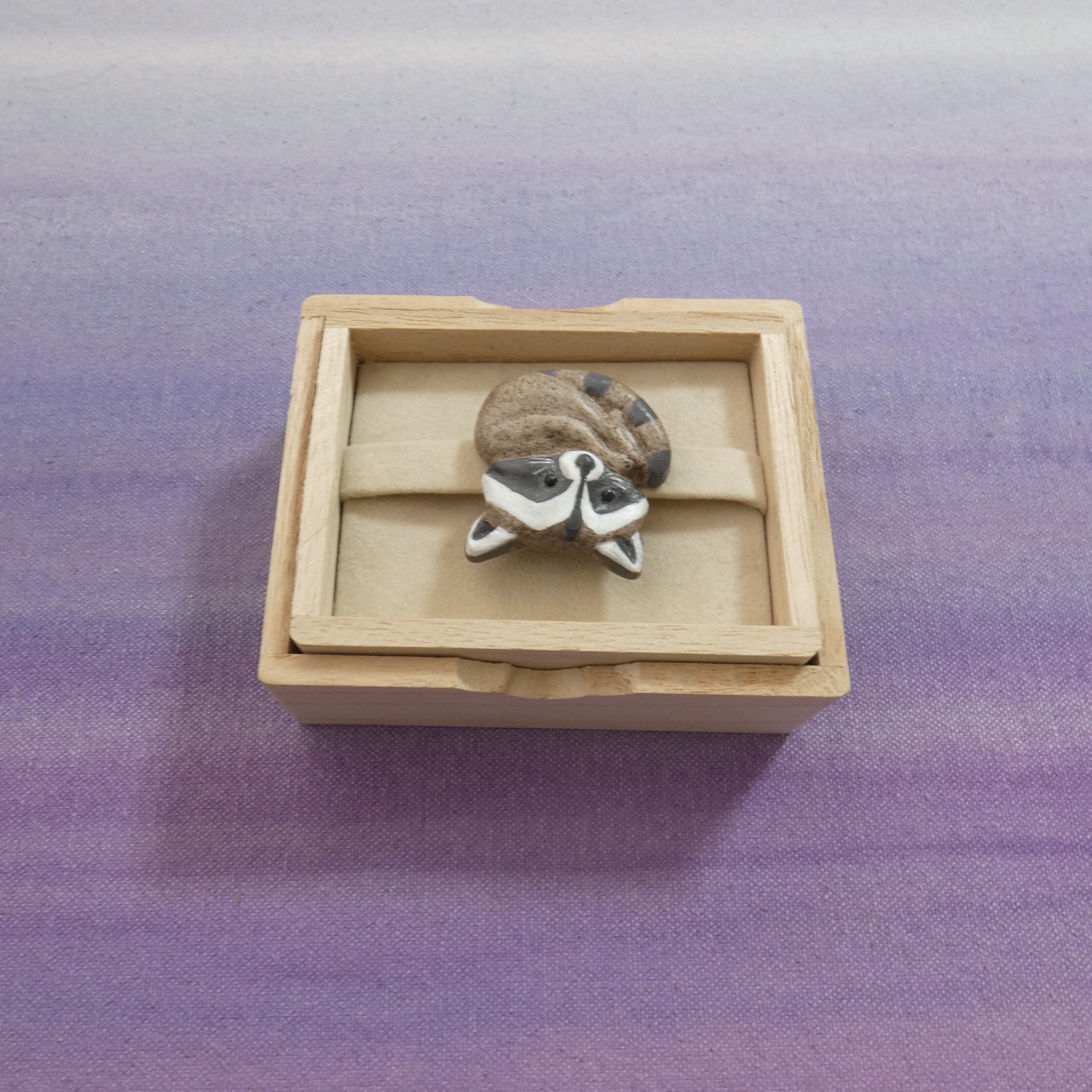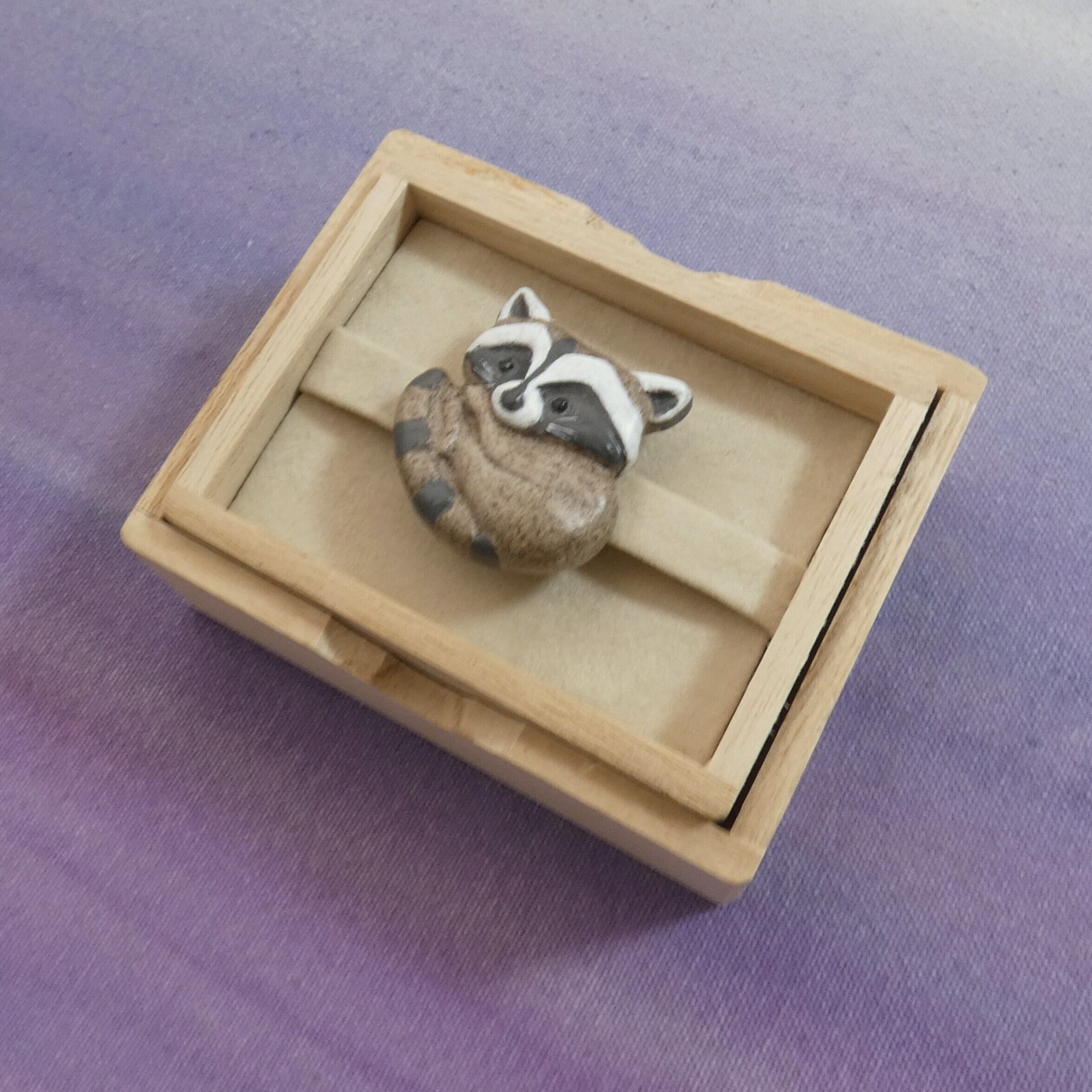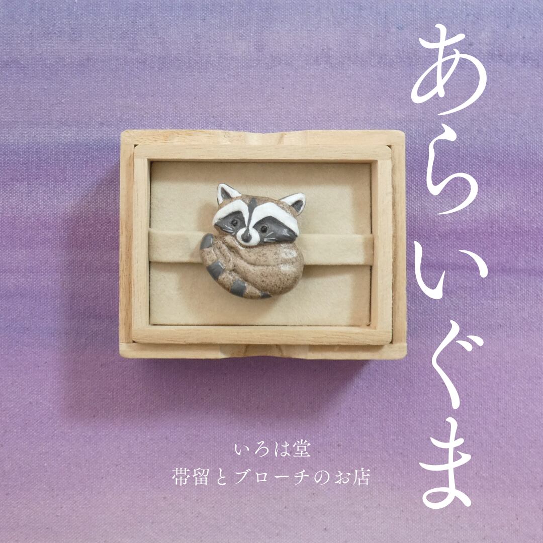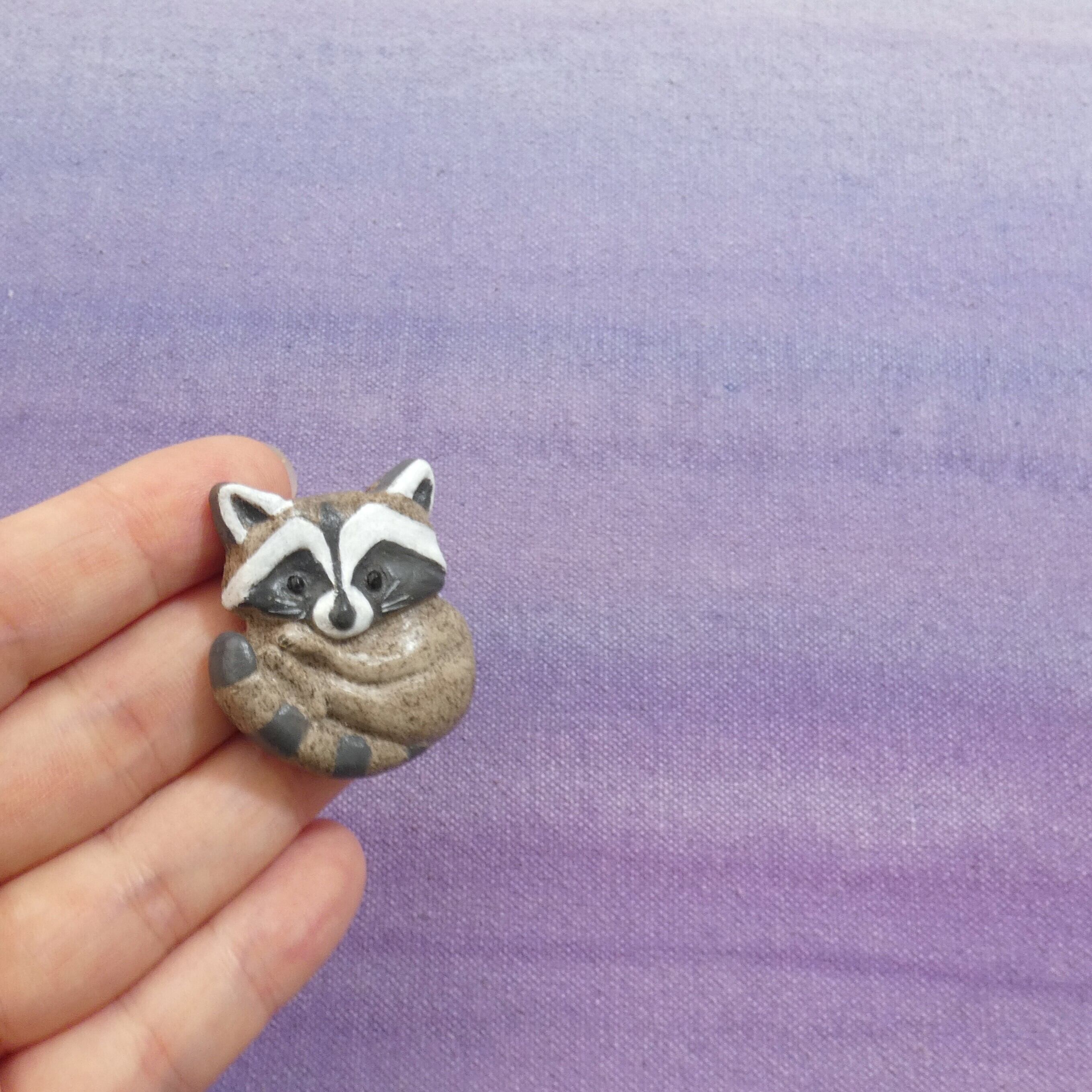 オーブン陶土で作った【アライグマの帯留めとブローチ】です。