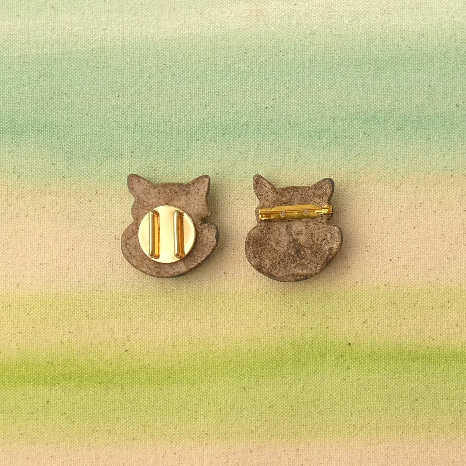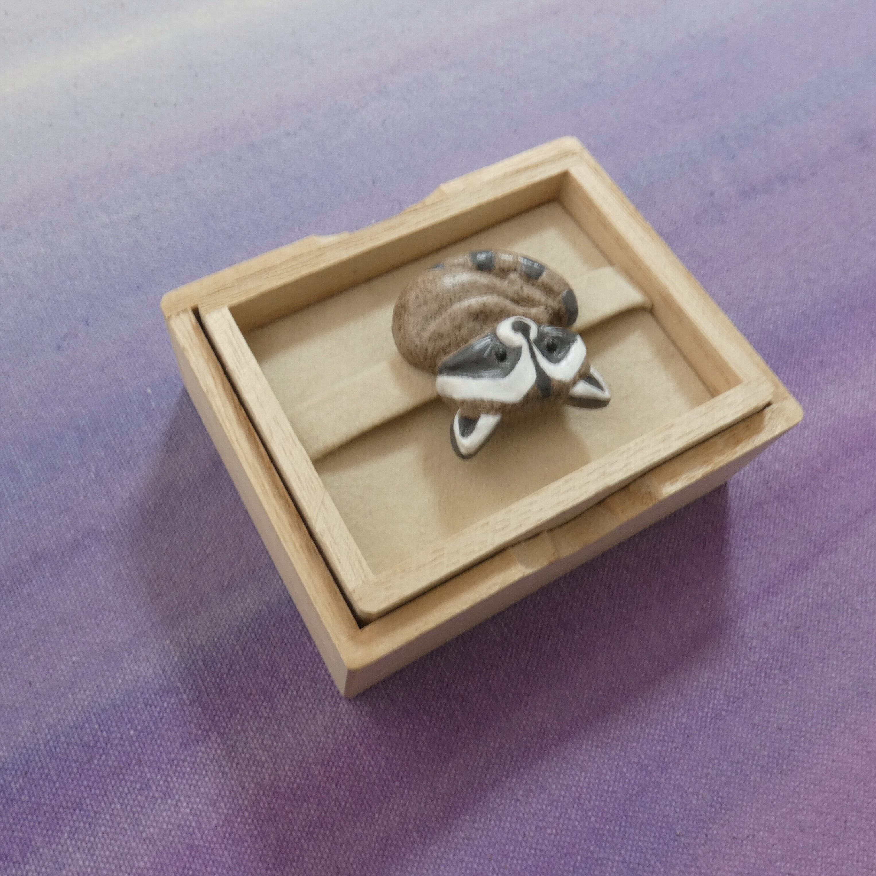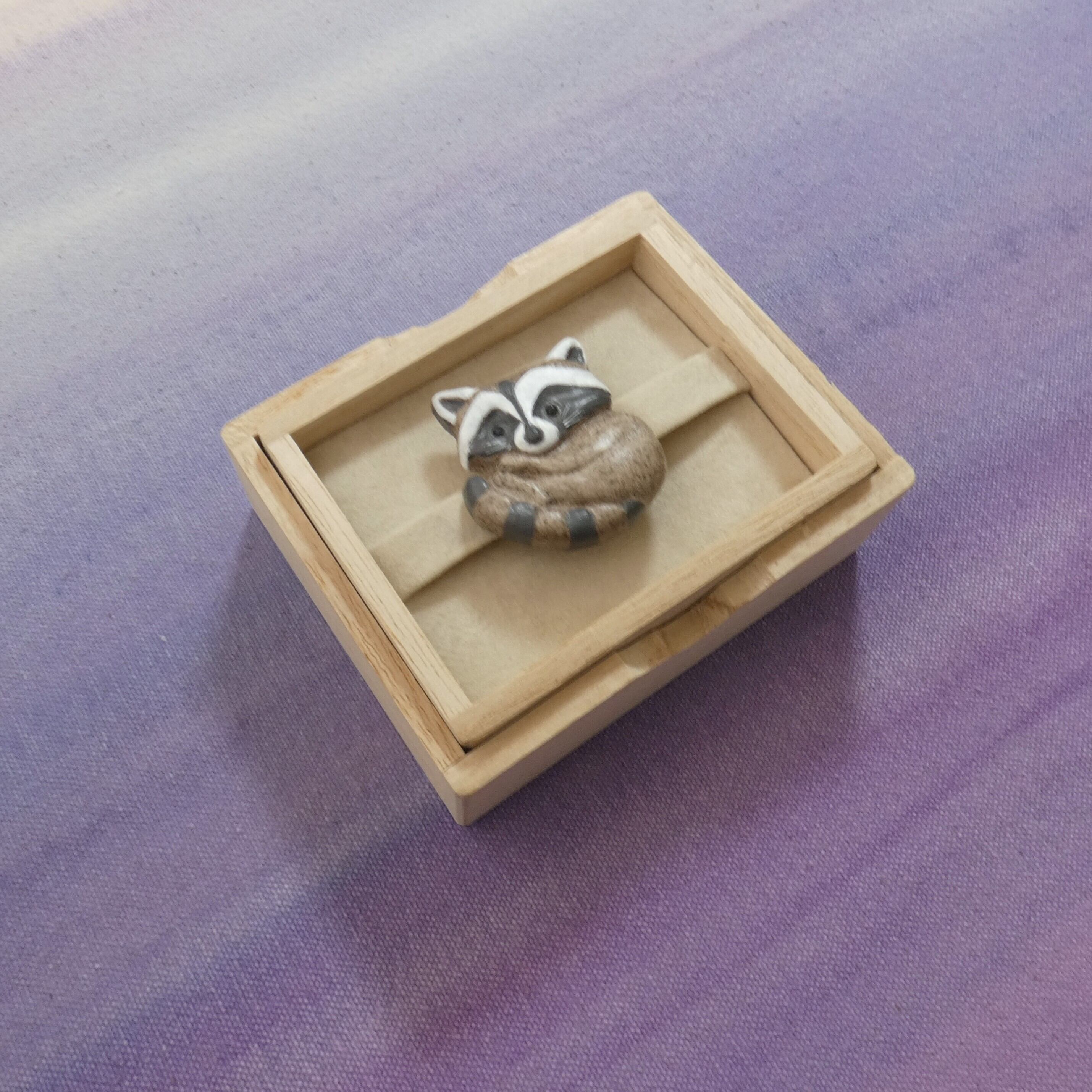 オーブン陶土で作った【アライグマの帯留めとブローチ】です。