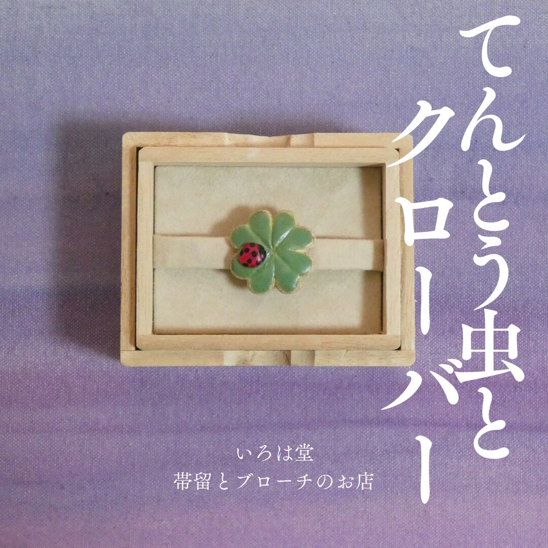 テントウム シクローバー 帯留め ブローチ てんとうむし 四葉のクローバー 虫 帯留 和装小物 【いろは堂】