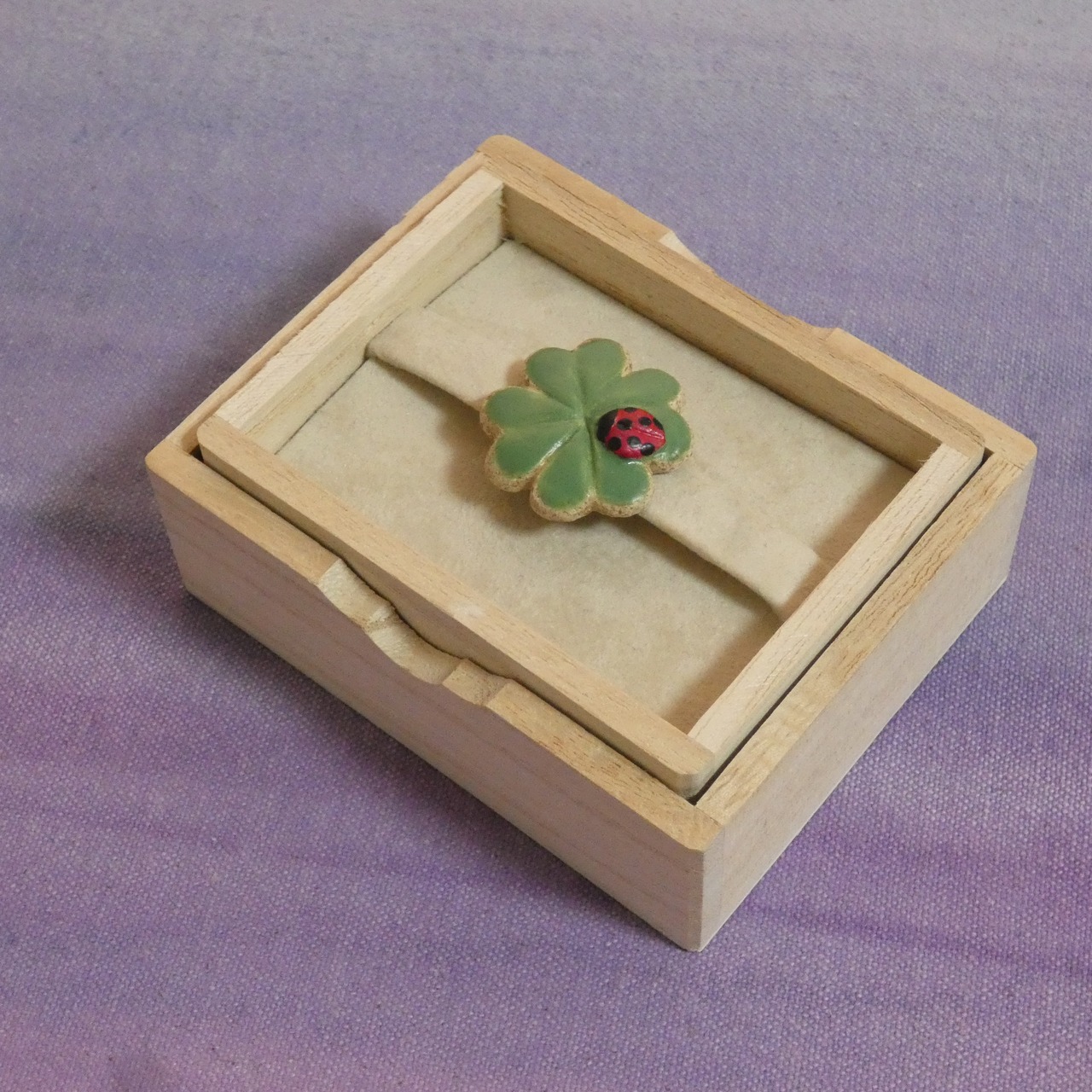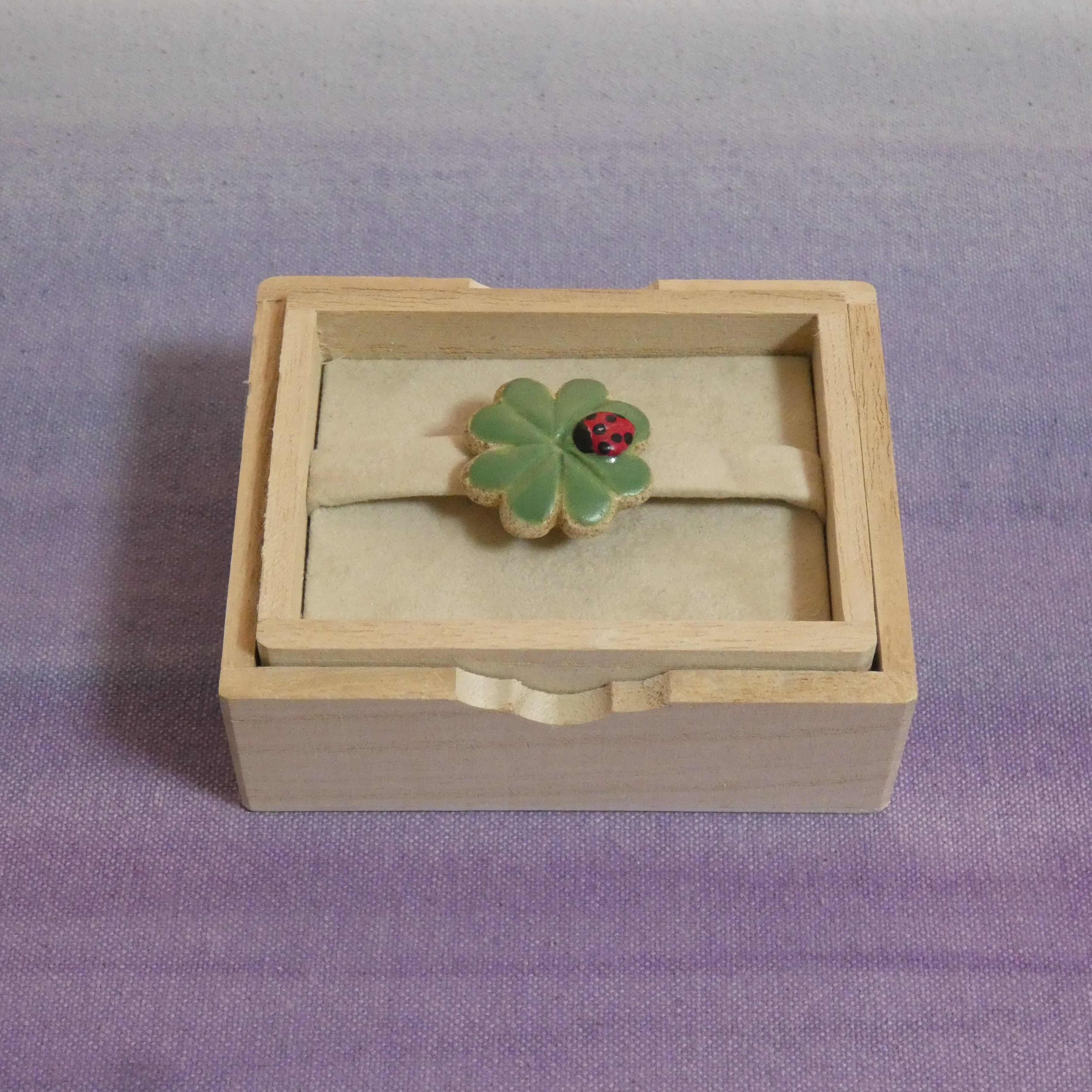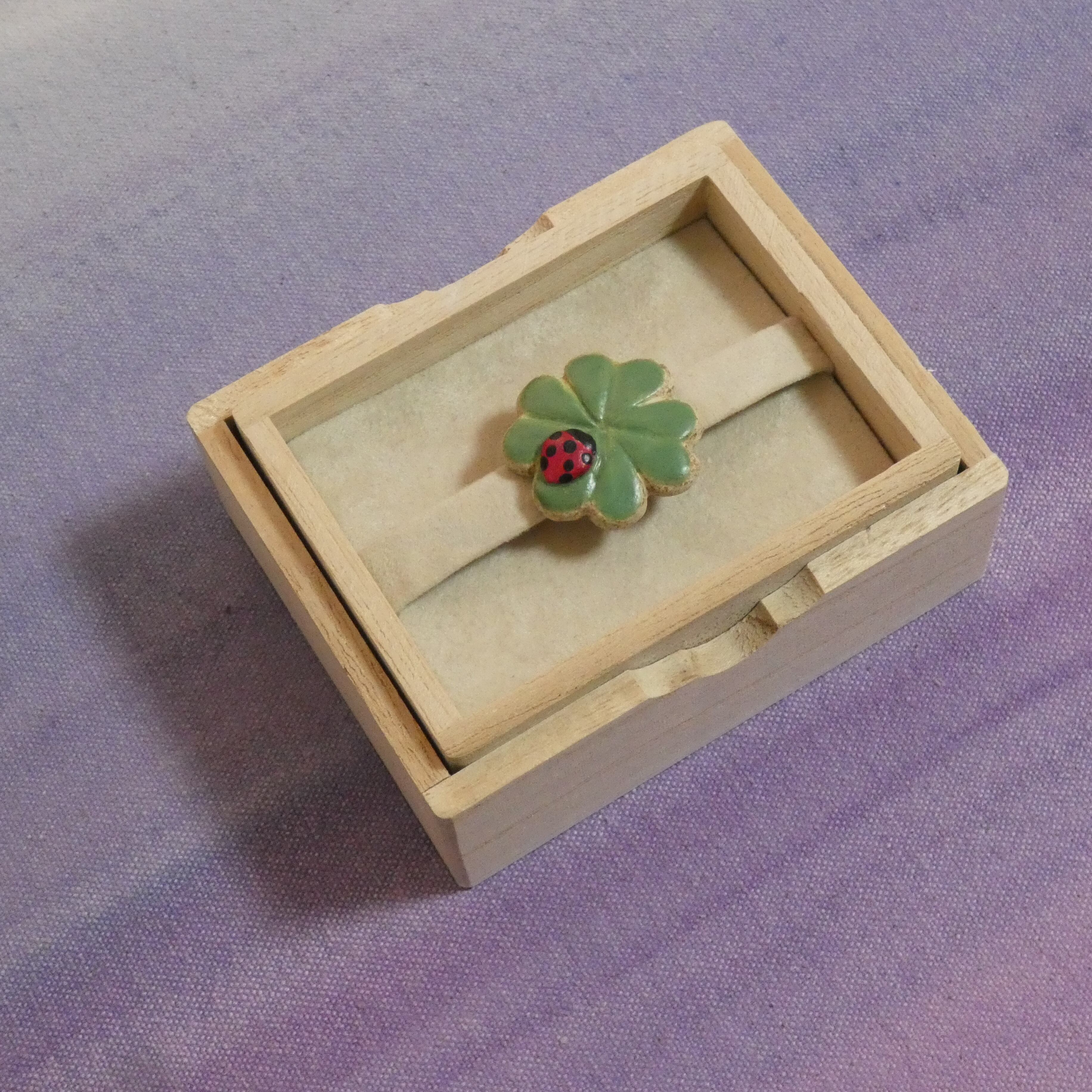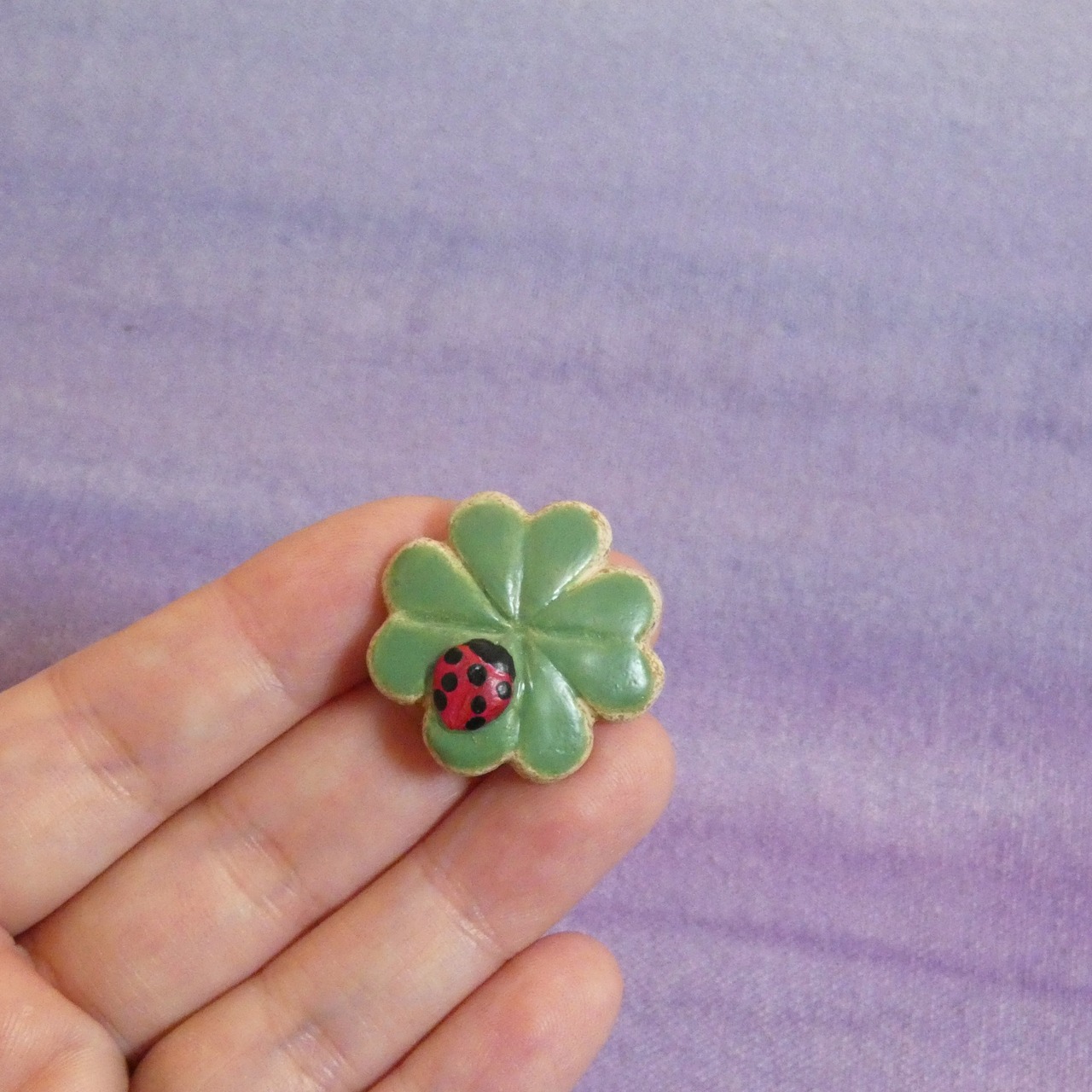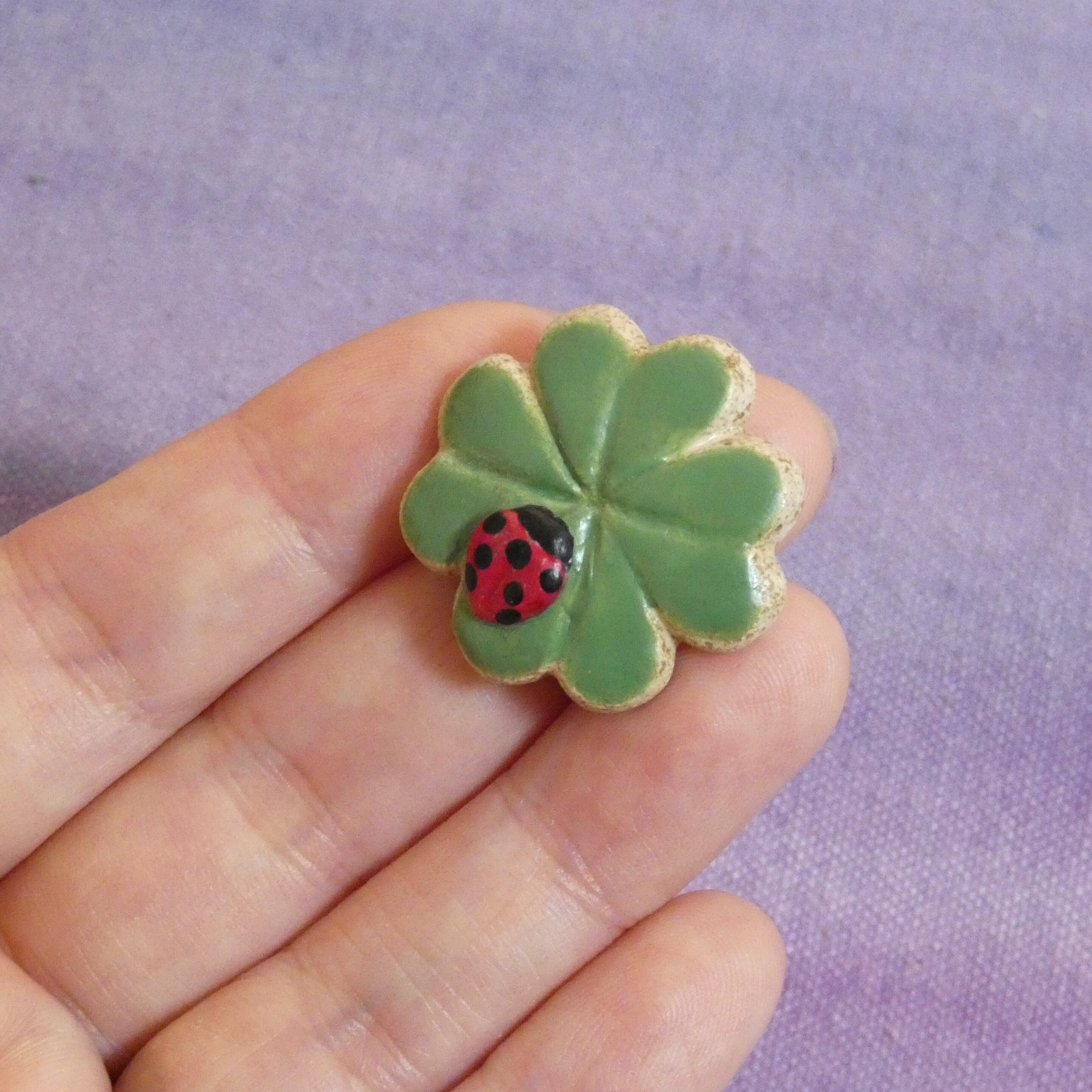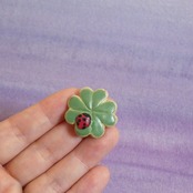 オーブン陶土で作った【テントウムシと四つ葉のクローバー】の帯留めとブローチです。