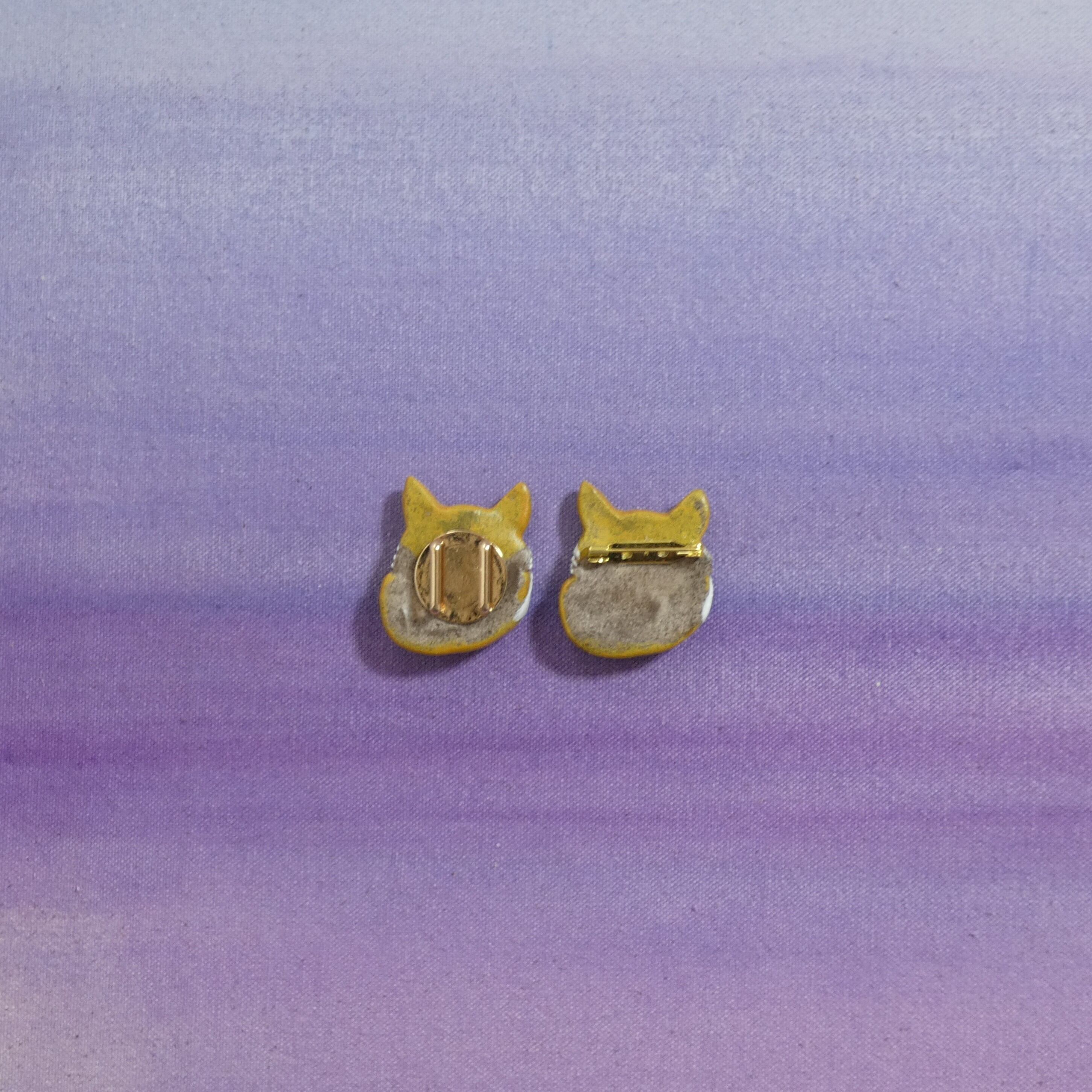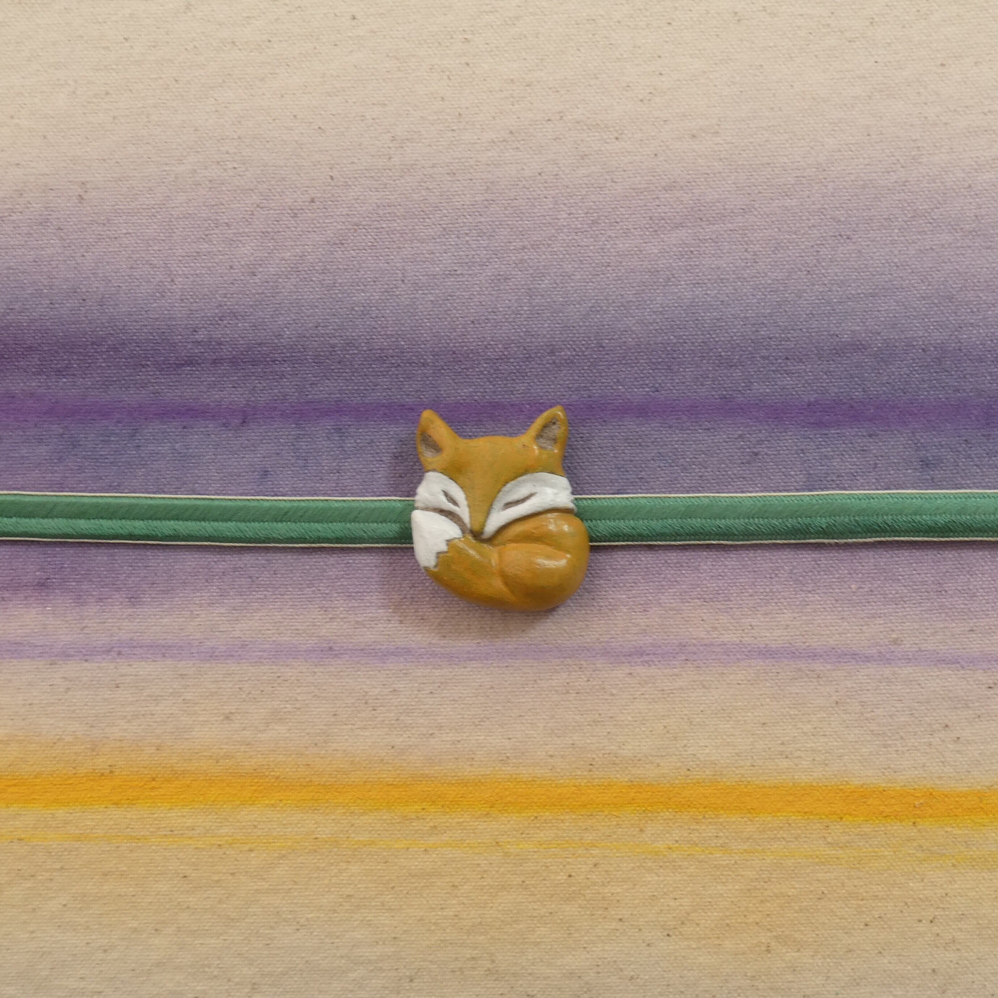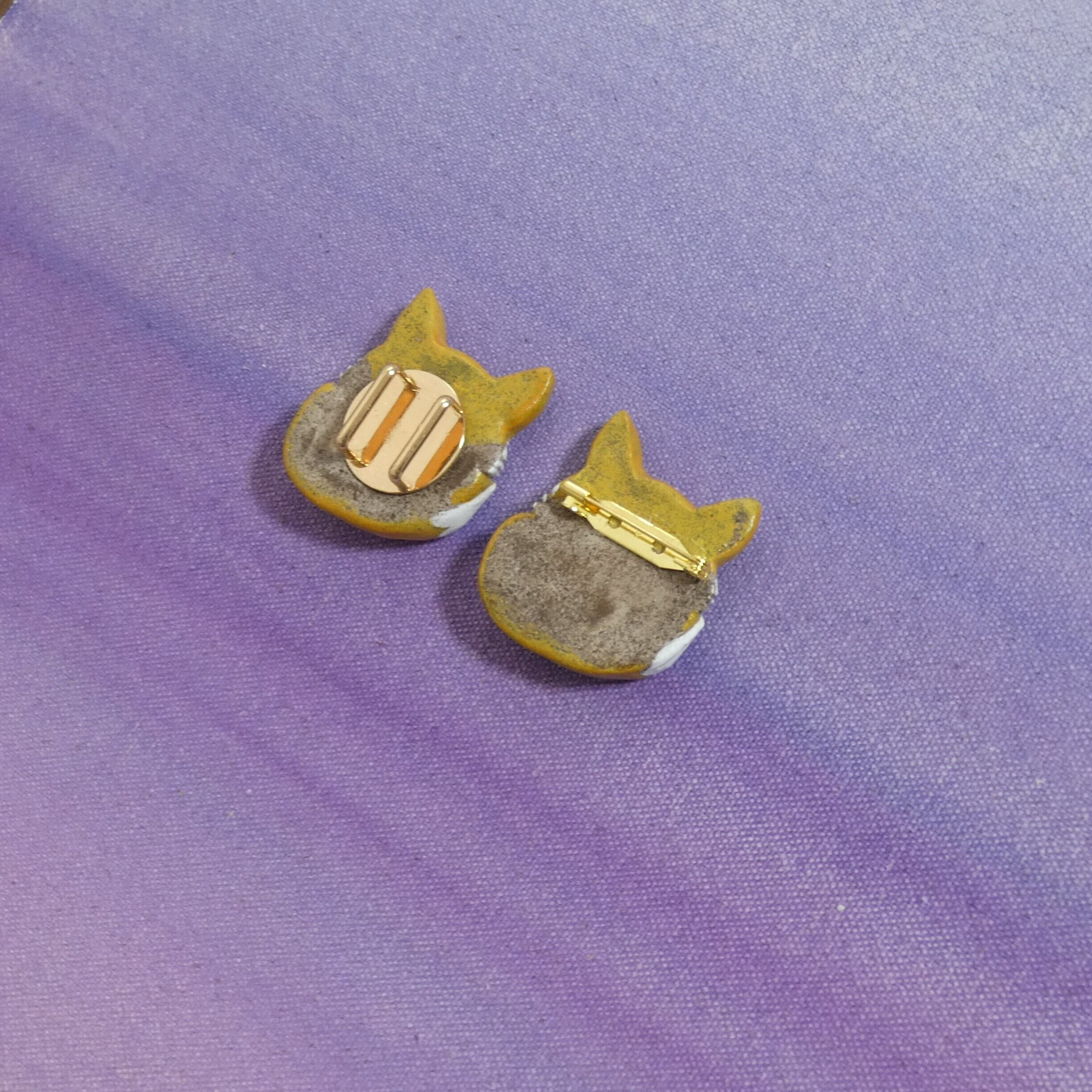 オーブン陶土で作った【キツネの帯留めとブローチ】です。