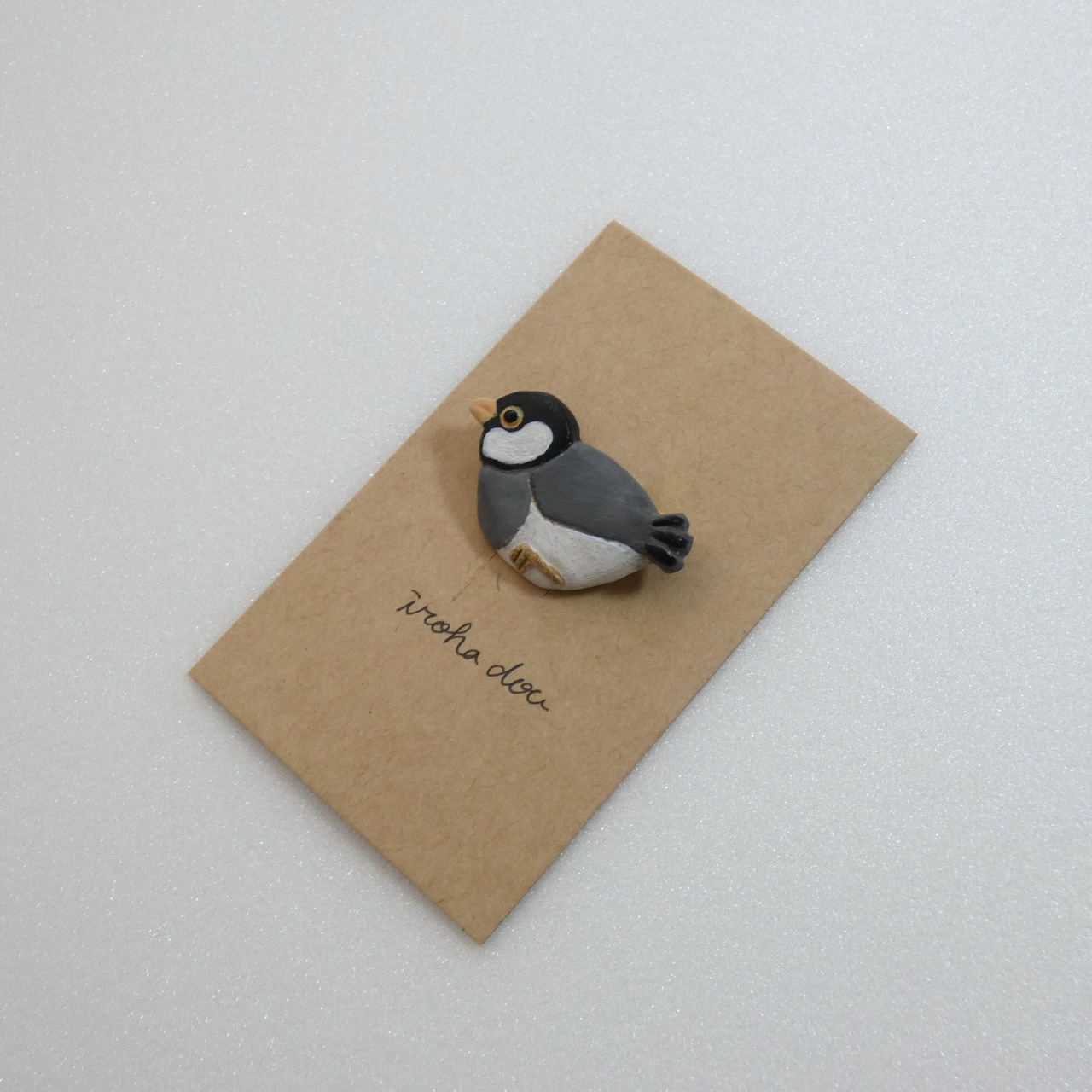 オーブン陶土で作った【文鳥の帯留めとブローチ】です。